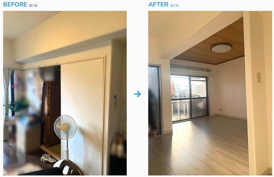| 改装箇所 | リビング+和室及び浴室+洗面所+建具の取替、内装全て その他 |