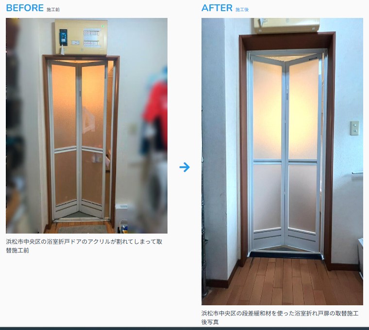 →**[浴室折戸をカバー工法と段差緩和材で交換した施工事例を見る]**